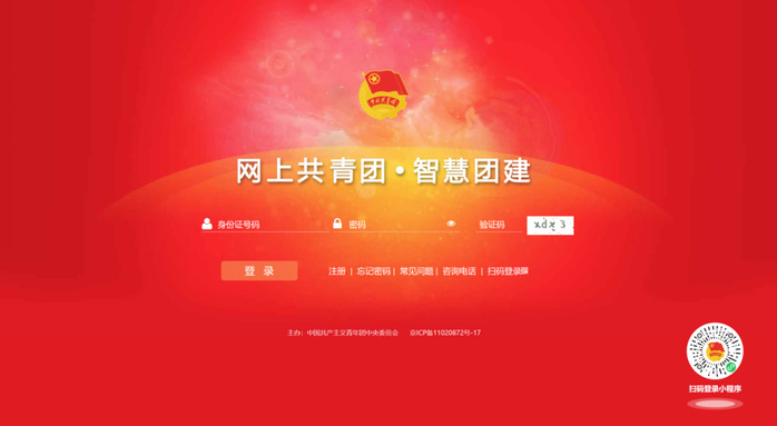 初始密码:新生团员本人身份证号后八位(首次登录后请记得修改密码)