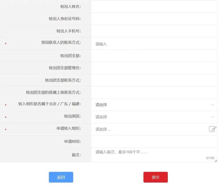 提交转接申请后,会经历必要的审核,你原来所在的团支部、该团支部的上级团组织、以及你申请转入的团支部等均要对你填写的内容进行严格审查。再次提醒,一定要如实正确填写,错填会被退回的哟。