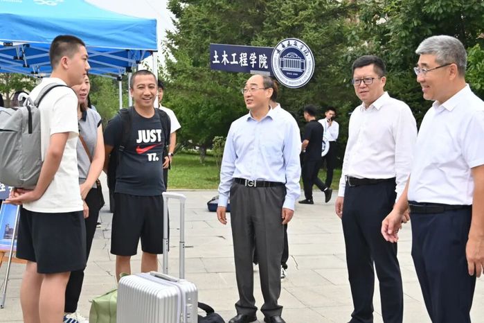学校高度重视迎新工作,校长任玉珊、党委书记李裕刚、执行校长孙雷、党委副书记张冀男,副校长张东鸣、孙万臣等先后来到奢岭、高新校区迎新现场,与新生及家长亲切交流,勉励新生珍惜时光,勤奋学习,成长成才,向送子求学的新生家长表示慰问和感谢。在与迎新志愿者和工作人员交流中,希望大家要将各项工作做实、做细、做到位,确保每一位新生都能顺利、便捷、安心地完成报到手续。
