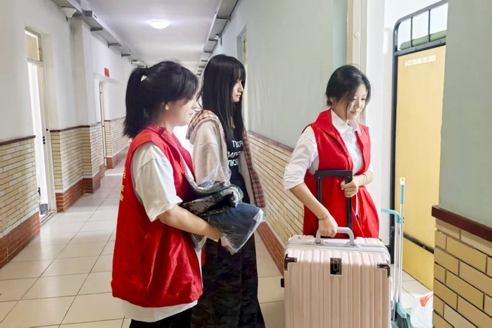从校门到宿舍,从教学楼到食堂,学校迎新工作人员的热情与细心无处不在,为新生铺就了一条温暖顺畅的入学之路。安保人员一次次手势有力、疏导交通,换来校园内外的秩序井然;食堂阿姨忙碌于灶前窗口,以可口的饭菜抚慰着初离家的味蕾与心灵;宿管阿姨耐心指引、细致提醒,让入住流程高效又亲切。
