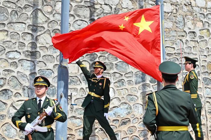 青春的眼眸共同望向旗帜