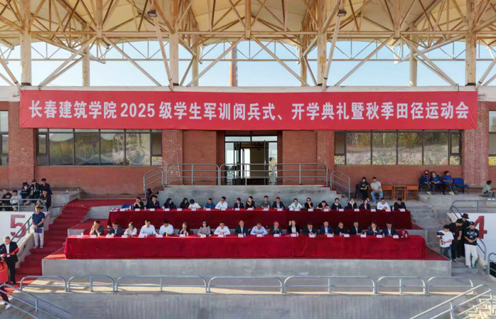 秋光潋滟,旌旗飞扬。9月26日,长春建筑学院在奢岭校区体育场举行2025级学生军训阅兵式、开学典礼暨秋季田径运动会。校长任玉珊,党委书记李裕刚,执行校长孙雷,副校长张东鸣、孟祥萍,见习副校长冯永、李琦、张鹏翔,校长助理邹建奇,以及各学院(部)、职能部门负责人,在校教职工、学生代表和2025级全体新生参加。