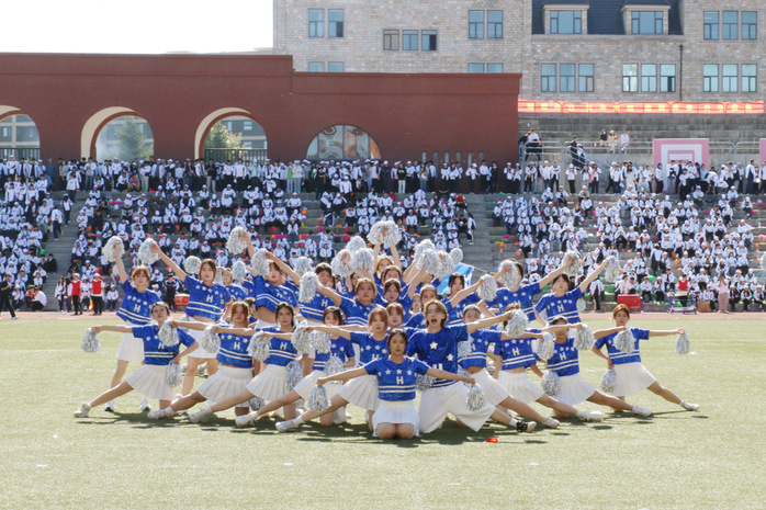 看台上,师生们情绪激昂,呐喊助威声此起彼伏。各学院啦啦队用跃动的身影和响彻全场的口号引爆热情,她们犹如跳动的音符,使热烈的气氛持续升温,感染着在场每一个人。