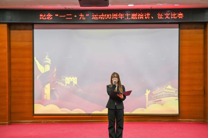台上的选手们站姿挺拔、声音洪亮、饱含激情,或娓娓道来“一二·九”运动中青年学生的英勇无畏,或慷慨激昂地呼吁铭记历史、挺膺担当,用富有感染力的话语触动每一位听众的心灵,让同学们深切感受到那段历史的厚重以及其中蕴含的伟大爱国主义情怀。